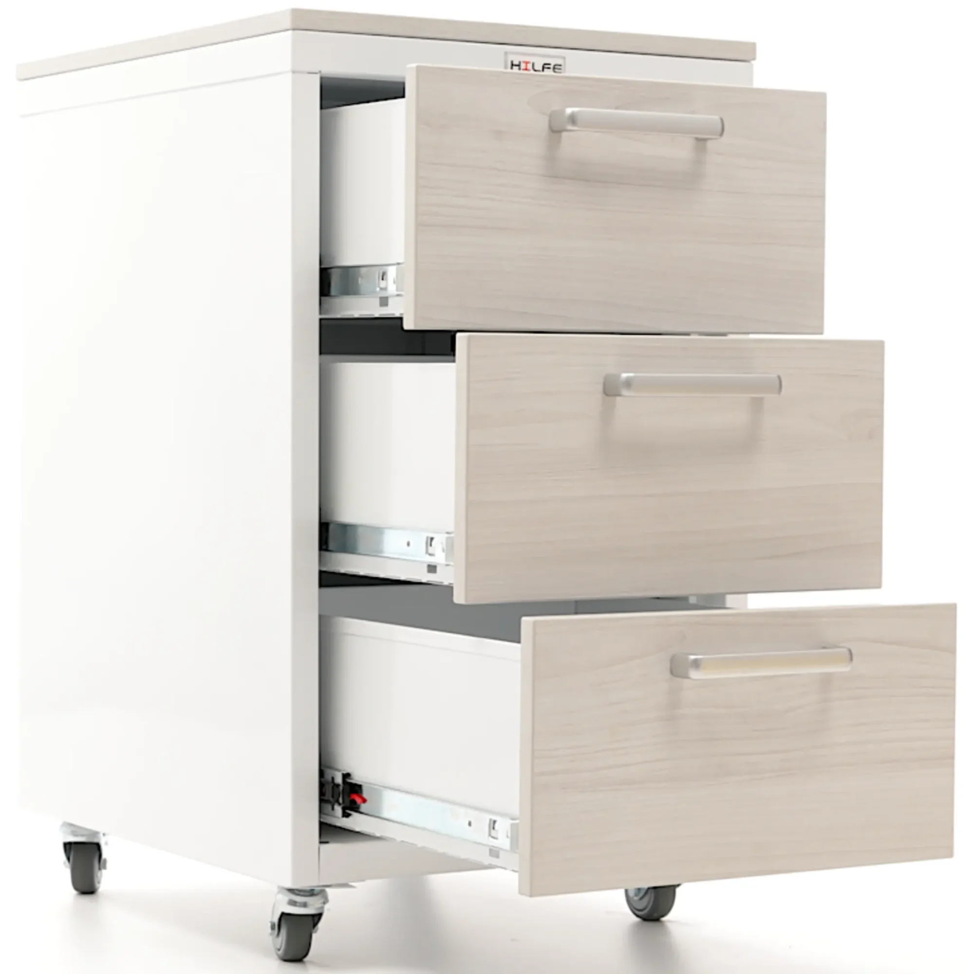 • телескопические направляющие обеспечивают свободный и плавный ход ящиков даже при полной загрузке, позволяют выдвигать ящик на всю длину и использовать 100% пространства;