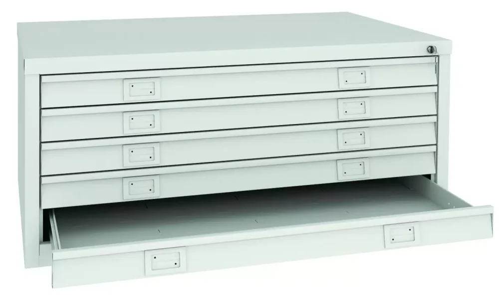 Шкаф картотечный FB-5 (формат А1) — это надежное и функциональное решение для хранения файлов и документов формата А1. Модель оснащена усиленными телескопическими направляющими выдвижных ящиков и рассчитана на 5 ящиков.
