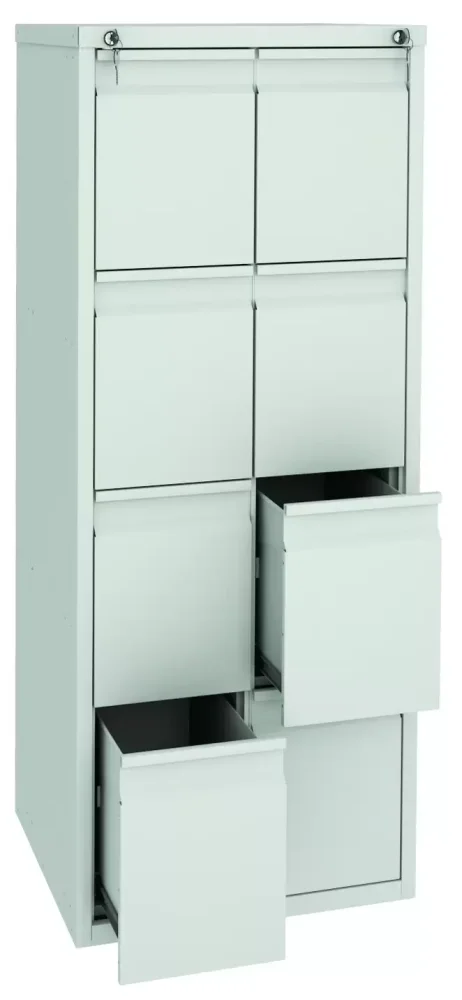 Шкаф картотечный FB 8 формат А4 — это надежное и функциональное решение для хранения файлов и документов формата А4 в подвесных файлах и папках. Модель оснащена усиленными телескопическими направляющими выдвижных ящиков и рассчитана на 8 ящиков.