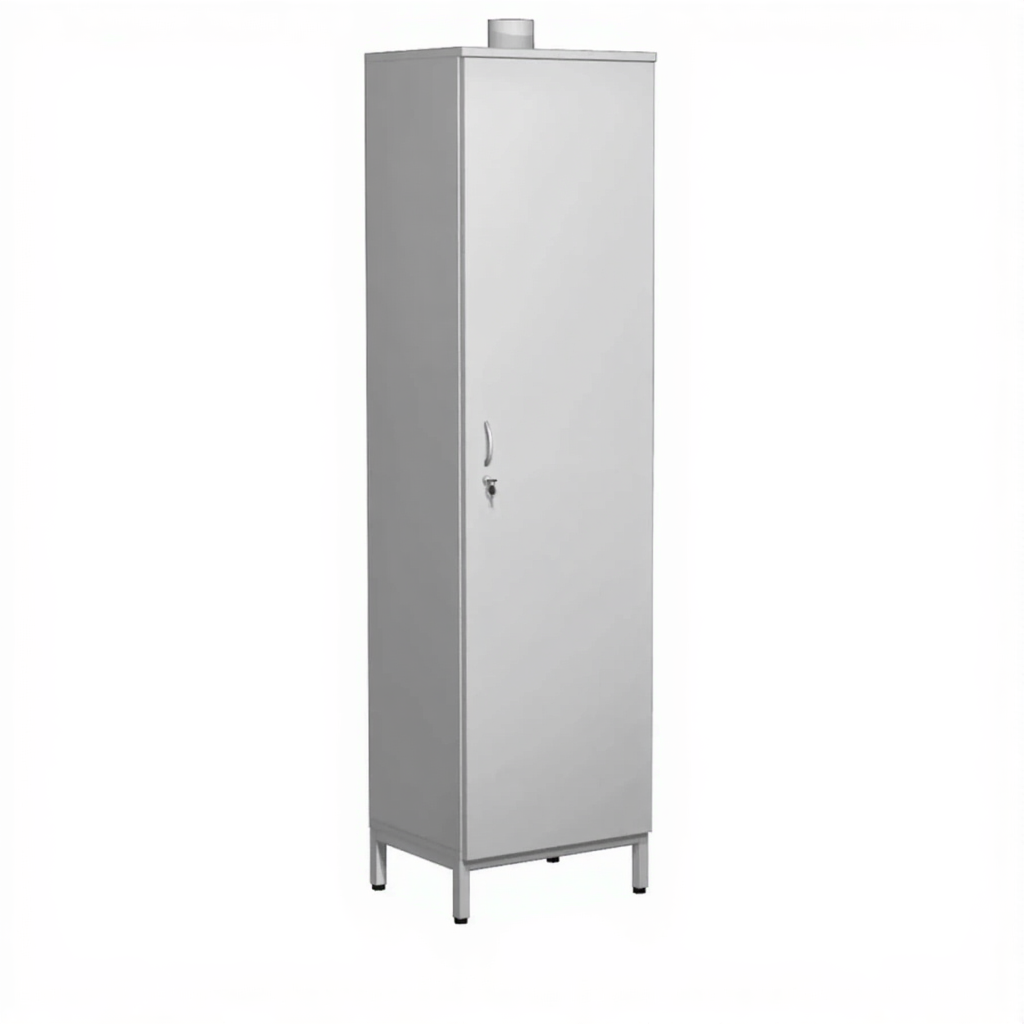 - Безопасное хранение — фланец для подключения к вытяжной вентиляции и вентиляционный канал обеспечивают удаление едких паров и защиту от их скопления.