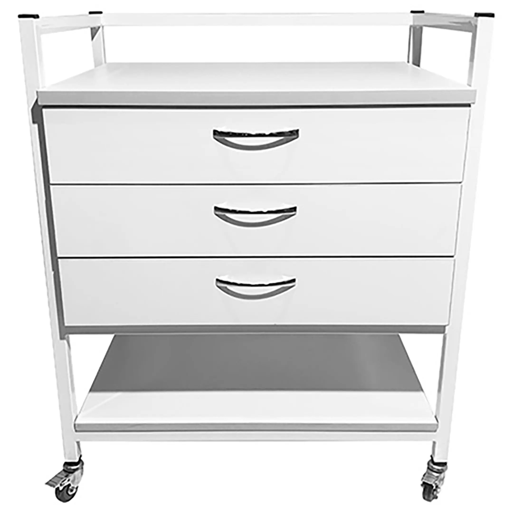 Стол лабораторный мобильный СЛм 17.003 (белый) — это надежное и удобное оборудование, которое нашло широкое применение в медицинских учреждениях и лабораториях для временного размещения и удобного перемещения различных инструментов, предметов и приборов. Модель оснащена тремя выдвижными ящиками и полкой под столешницей. Каркас выполнен из стального профиля, столешница из ЛДСП толщиной 16 мм.