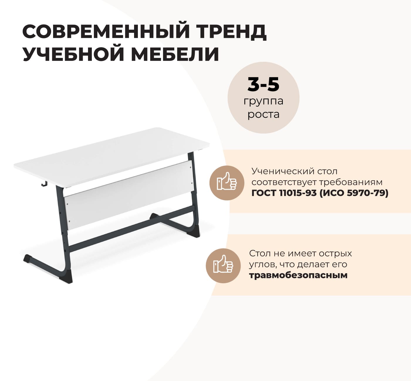 Преимущества стола ученического берёза/белый муар