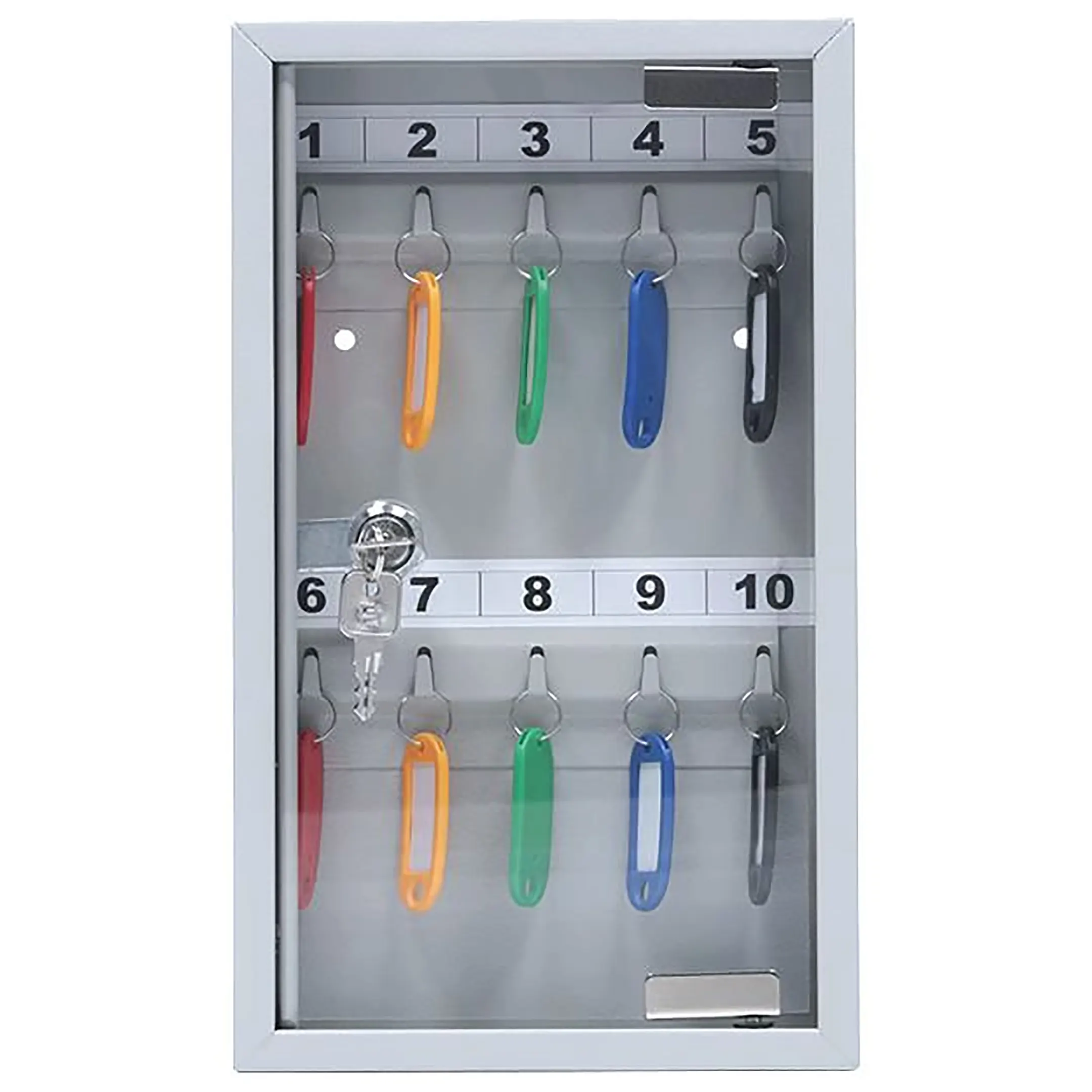 - Полная готовность к использованию в минимальной комплектации — комплект включает ключницу и полный набор из 10 брелков. Это оптимальное решение для быстрого наведения порядка на конкретном рабочем месте без лишних затрат и без необходимости докупки аксессуаров.