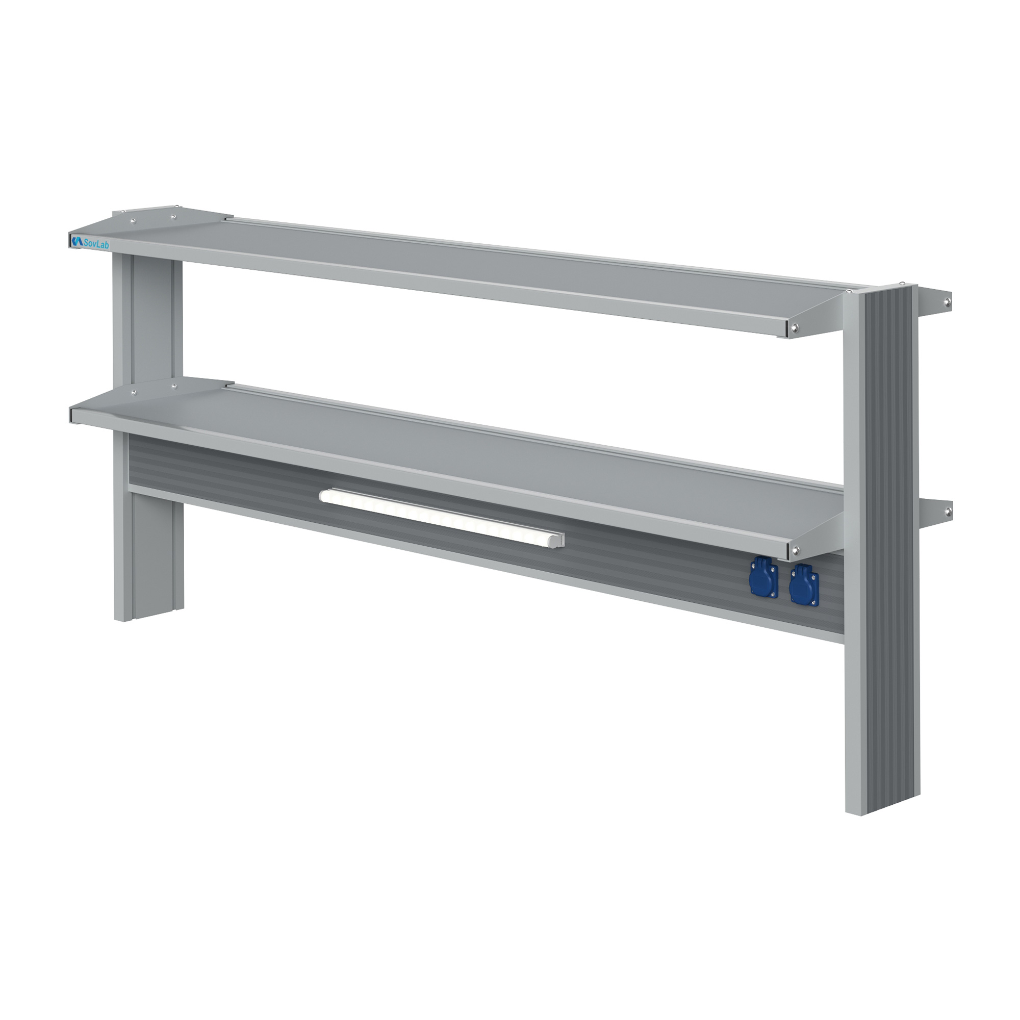 Технологический островной низкий стеллаж Mod. 1800 ТСОн — это специализированное лабораторное оборудование, устанавливаемое на рабочую поверхность островных столов и предназначенное для размещения лабораторных приборов, посуды, инструментов и расходных материалов. Модель оснащена двумя горизонтальными полками, блоком электророзеток и светодиодным светильником для местного освещения рабочей зоны.