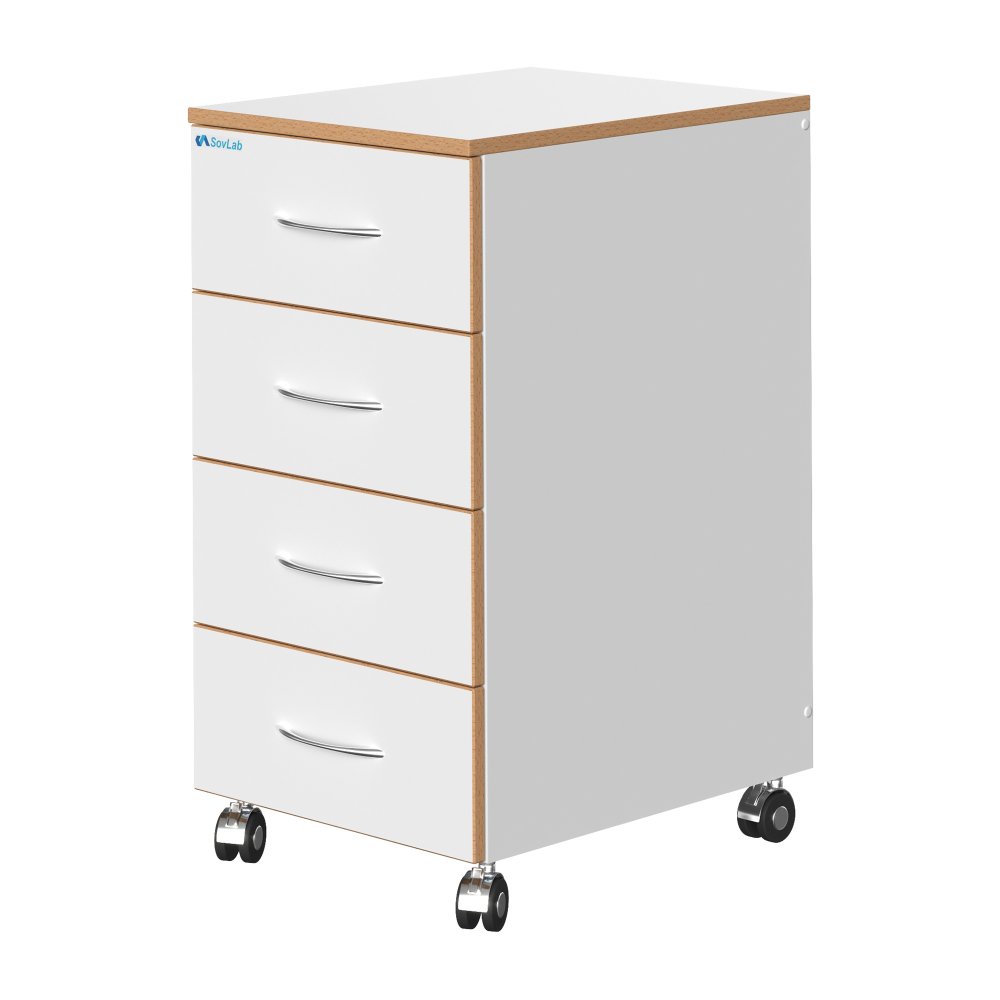Тумба подкатная высокая СОВЛАБ 400 4-ТЯв — это мобильное лабораторное оборудование, предназначенное для хранения лабораторного оборудования, инструментов и мелкого инвентаря. Модель оснащена четырьмя выдвижными ящиками на телескопических направляющих полного выдвижения и колесными опорами со стопорами для удобного перемещения и фиксации.