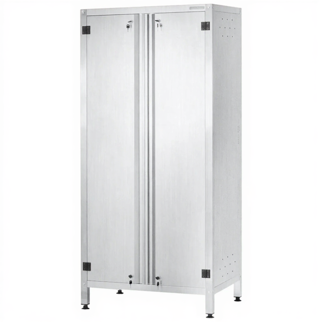 - Промышленная прочность и долговечность — конструкция из нержавеющей стали выдерживает значительные весовые нагрузки, устойчива к ударам, высокой температуре и влажности. Шкаф рассчитан на многолетнюю интенсивную эксплуатацию в условиях пищевых и медицинских производств.