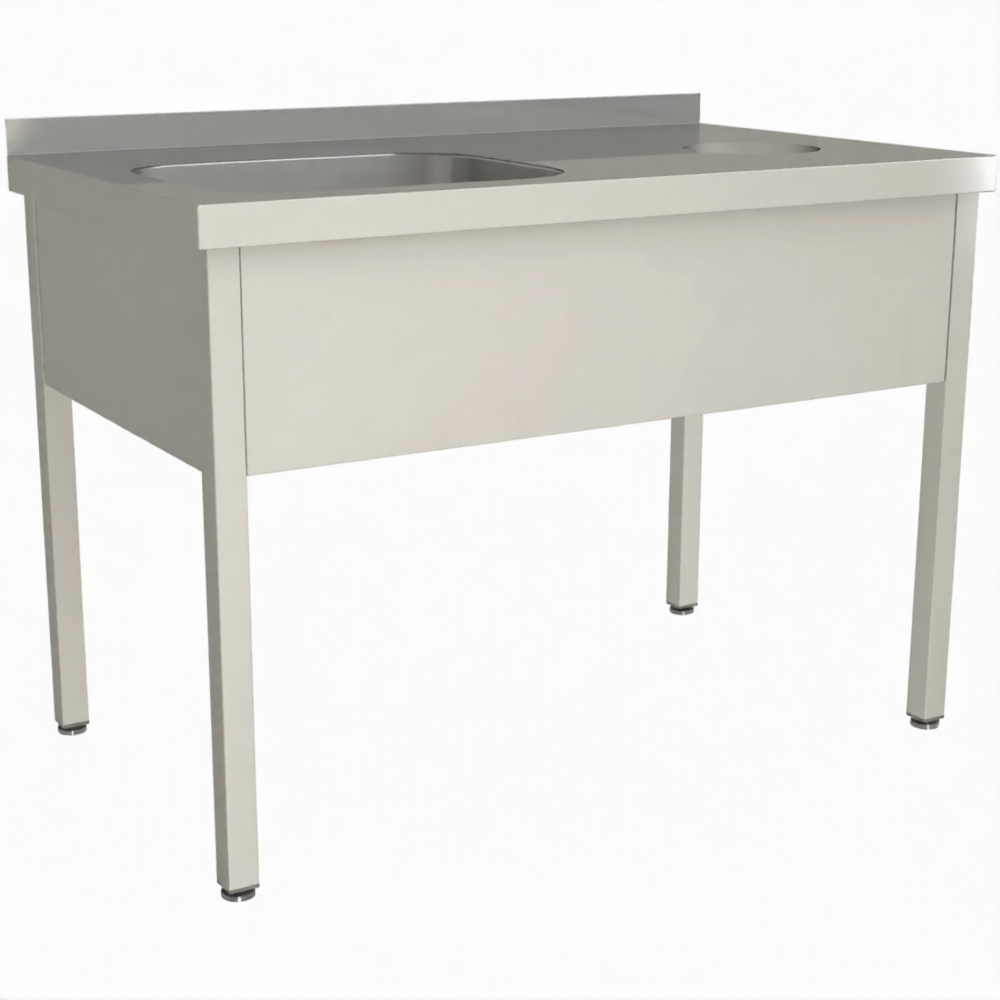 Стол для сбора пищевых отходов с ванной СПОВЦ/1-13/7-БО-Л предназначен для применения на предприятиях общественного питания любого формата, пищевых производствах и пищеблоках.