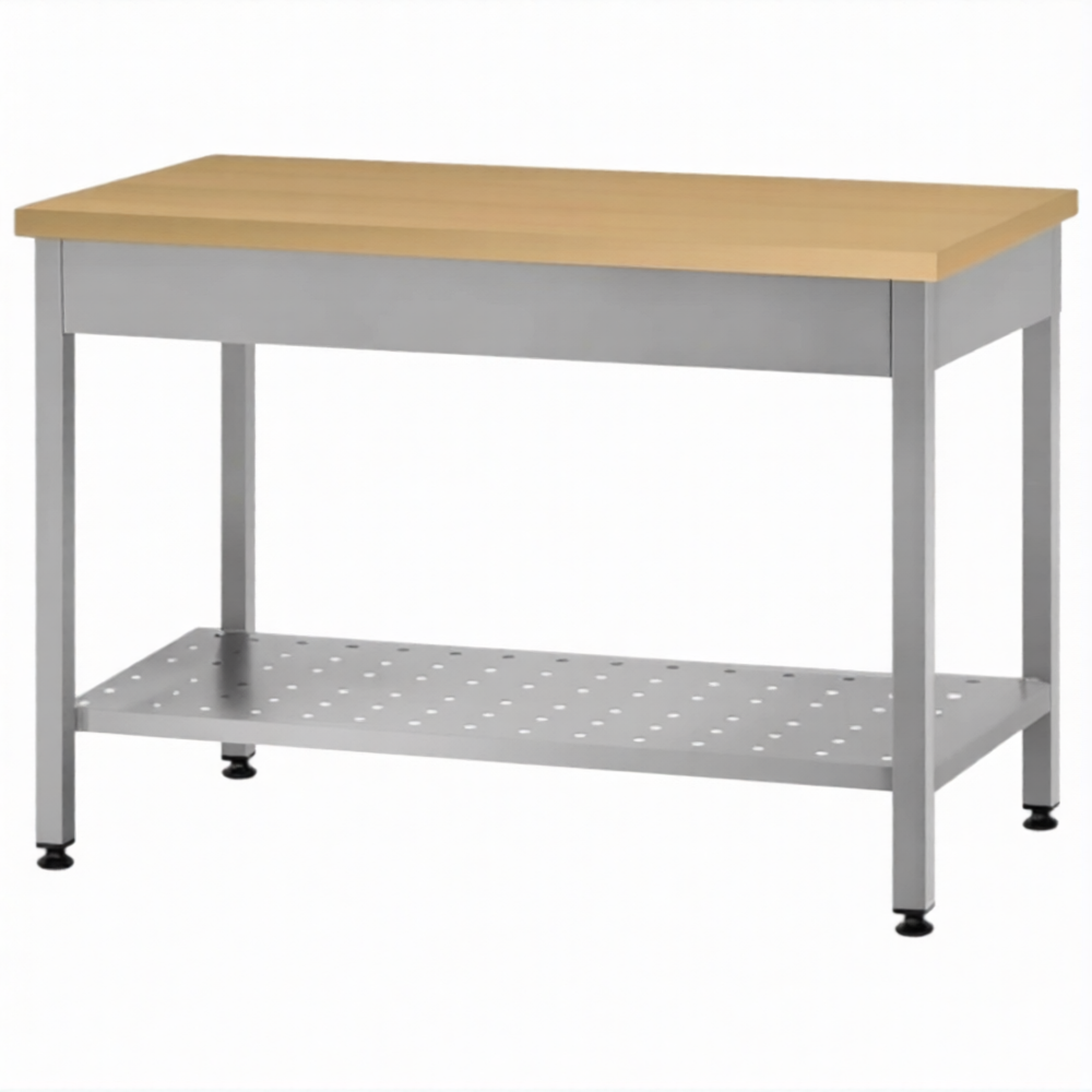 Стол кондитерский СПРп 860х1500х700 «Profi Inox», на 6-ти ногах, бук/40 (полка перфорация)