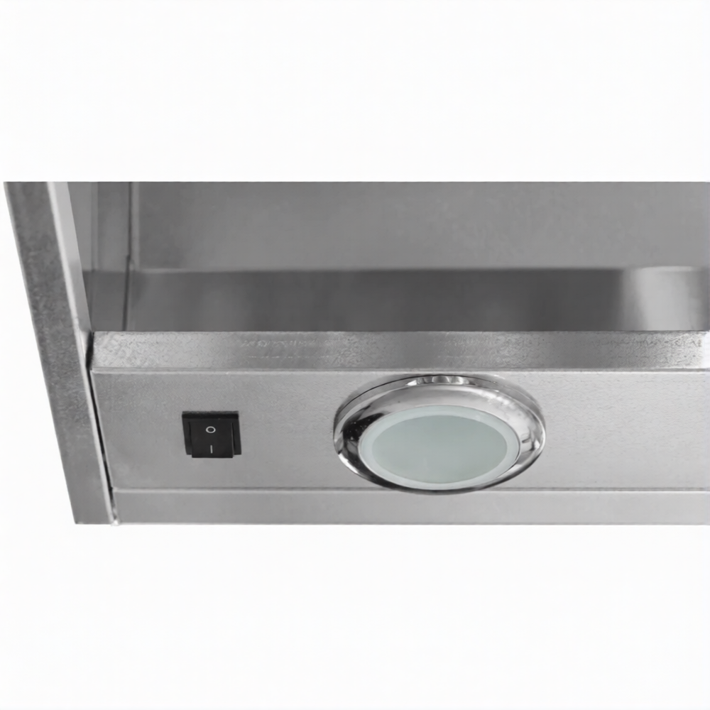 Зонт вытяжной универсальный ЗВУб 400х800х1000 «Base» (к-т светильников) используется на профессиональной кухне для повышения производительности общей системы вентиляции, удаления водяного пара из воздуха и более эффективного жироулавливания.