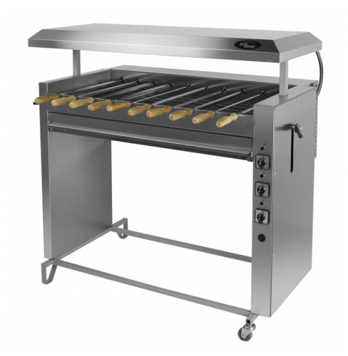 Шашлычница Гриль-Мастер Ф3ШЭ — это профессиональное оборудование для предприятий общественного питания и уличной торговли, предназначенное для приготовления шашлыков, кур, мяса и других продуктов. Модель оснащена подъемной крышей, регулирующей уровень тепловой обработки, и автоматическим вращением шампуров.