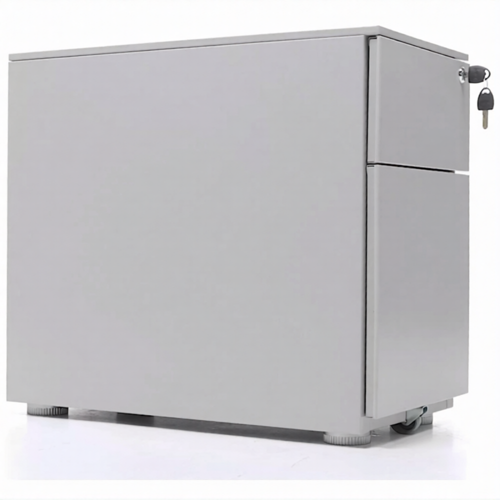 Опции: пластиковые лотки и металлический ящик для канцелярских принадлежностей и других предметов. Возможность комбинирования цветов: корпус + фасады ящиков и крышка (конструкция тумбы металл+металл). Или отделка фасадов ящиков и крыши тумбы ламинированной плитой ЛДСП (конструкция тумбы металл+ЛДСП)