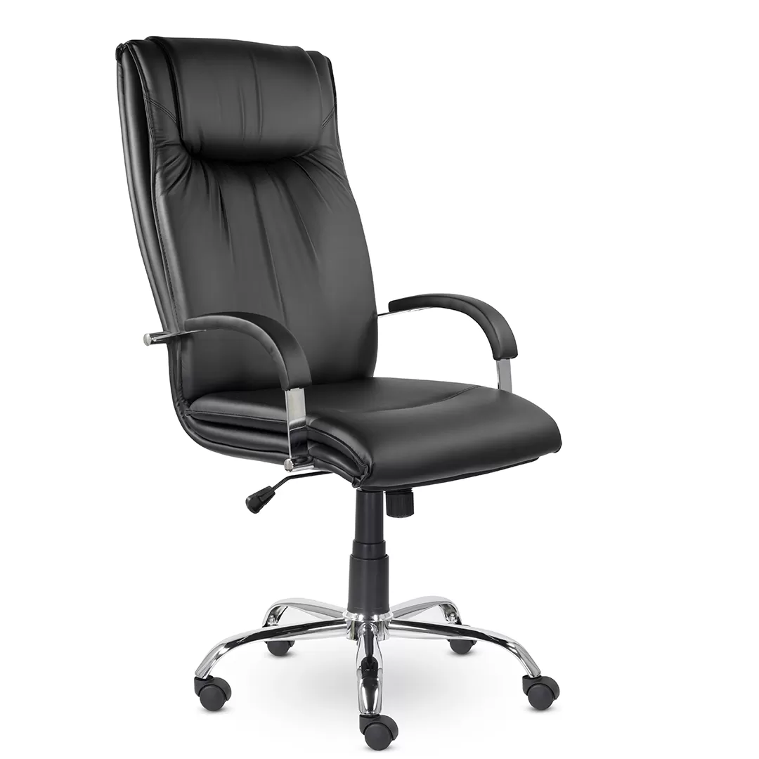Кресло Артекс В хром — солидное офисное кресло руководителя с высокой спинкой, подголовником и стильным хромированным основанием. Модель сочетает комфорт, презентабельный внешний вид и надёжную конструкцию, что делает её отличным решением для кабинетов, переговорных и рабочих пространств.