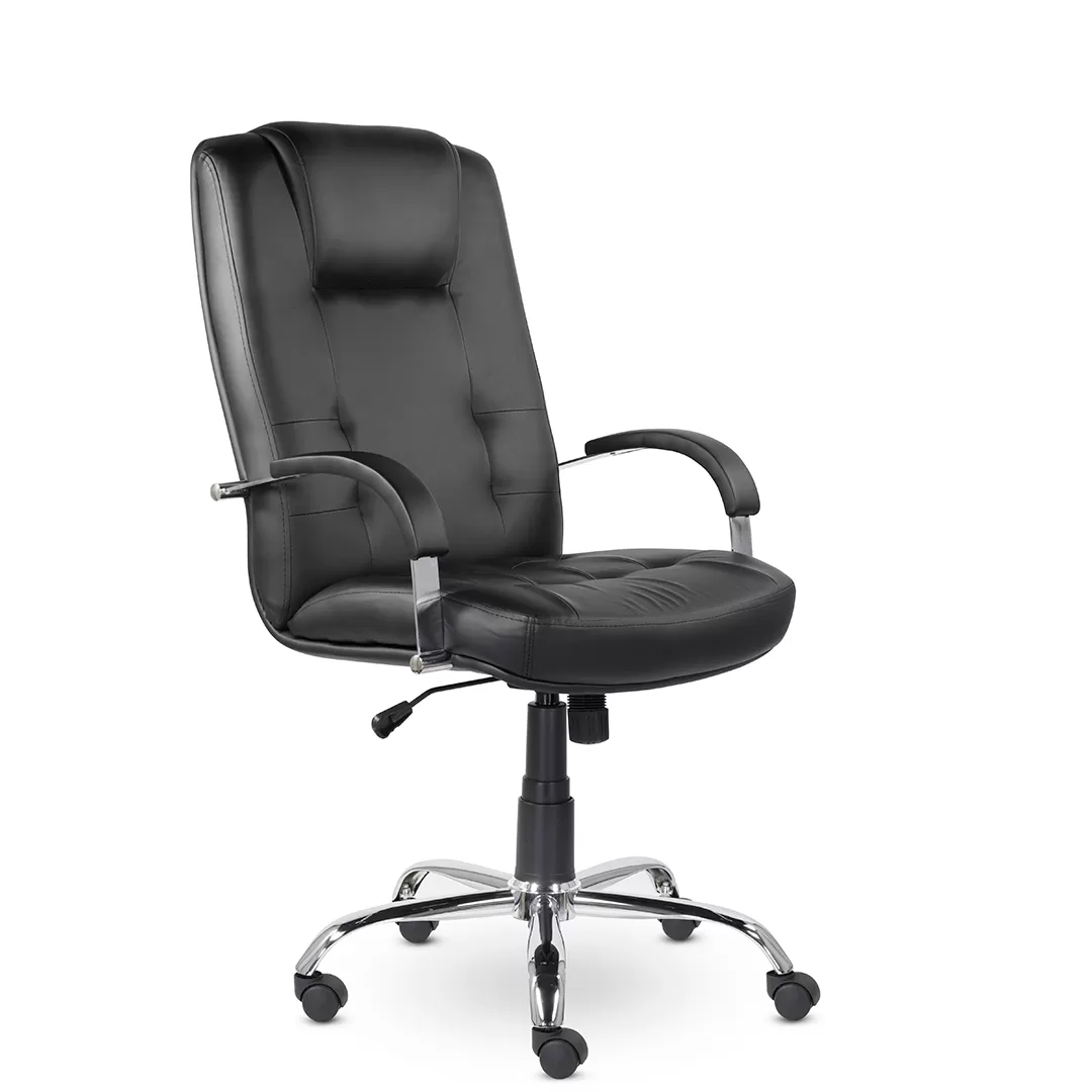 Кресло K‑41 Кендо В хром — стильное и солидное офисное кресло руководителя с высокой спинкой, подголовником и хромированными элементами. Модель сочетает презентабельный дизайн, комфортную посадку и надёжную конструкцию, что делает её отличным решением для кабинетов, переговорных и рабочих зон.