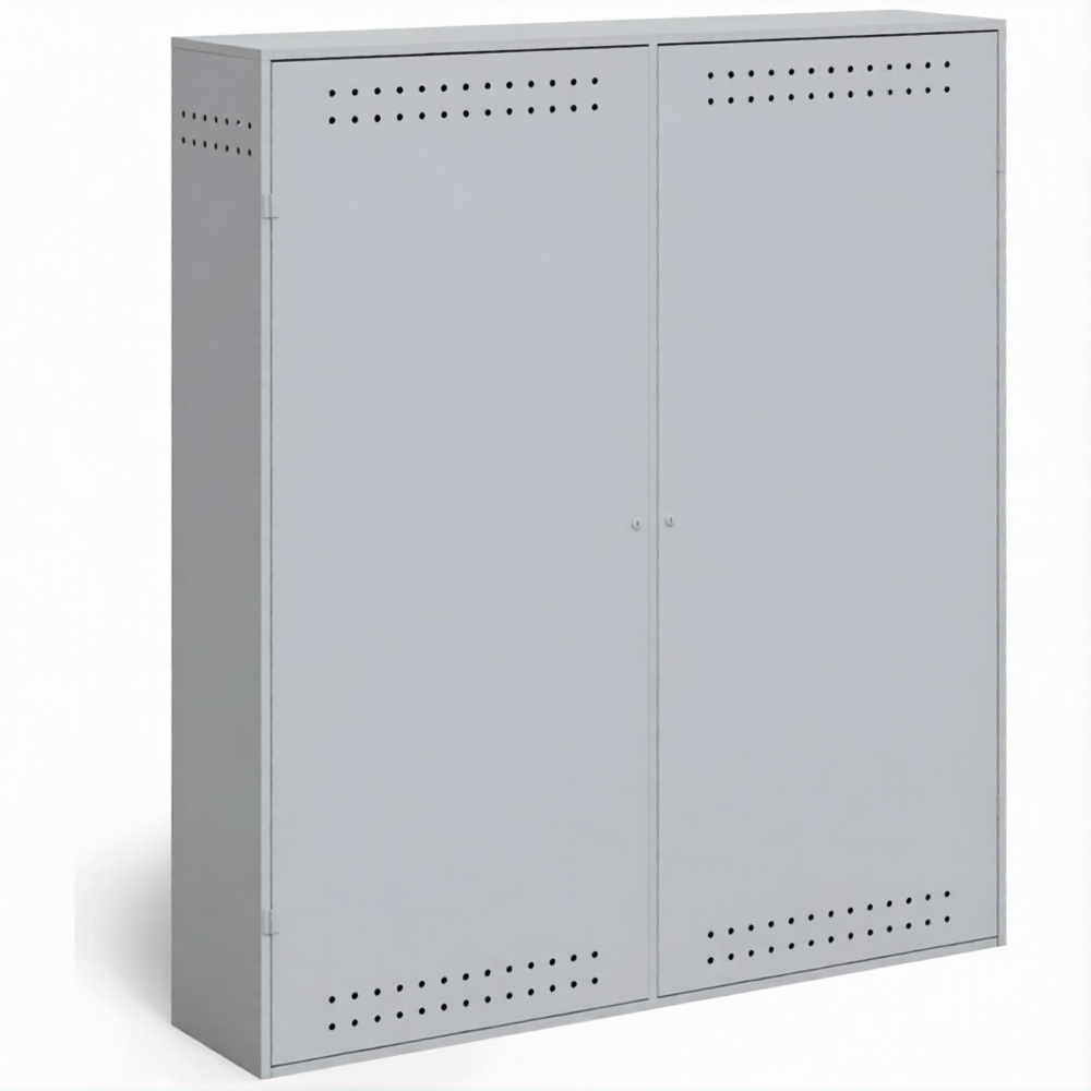 - Обеспечение требований пожарной безопасности — металлический корпус изолирует баллоны от возможных источников возгорания, искр и тепла. Наличие системы естественной вентиляции (перфорация или вентиляционные решетки) предотвращает образование взрывоопасной концентрации газа в случае микроутечки, что строго соответствует нормам ППР в РФ.