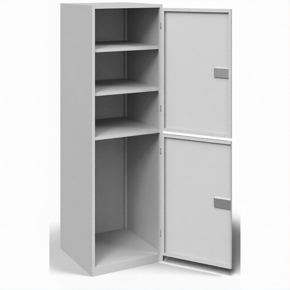 • Шкаф двухдерный с замком - накладной БИФ. Внутри шкафа установлены 2 полки.