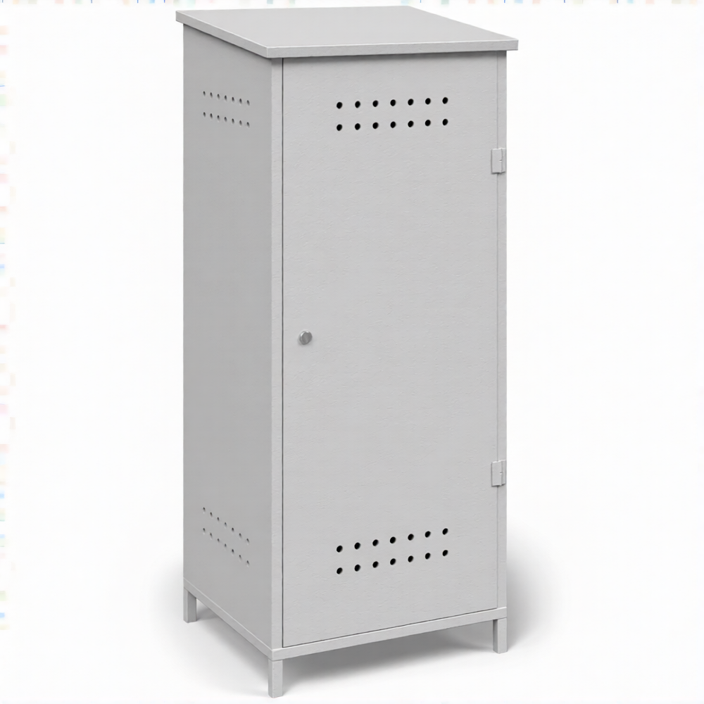 - Гарантированное обеспечение пожарной безопасности — шкаф служит надежным пожаробезопасным барьером, изолирующим пропановые баллоны от источников открытого огня, искр и теплового излучения. Обязательная система вентиляции (перфорационные отверстия в нижней и верхней зонах) обеспечивает постоянный воздухообмен и безопасный отвод тяжелого газа в случае утечки, предотвращая образование взрывоопасной концентрации.