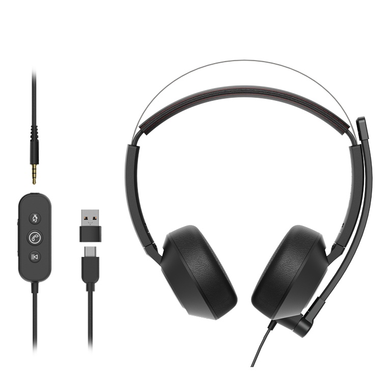 Гарнитура, поворотные динамики на 270°, микрофон, интеллектуальное шумоподавление, типовое линейное управление, TRS 3.5 mm, USB